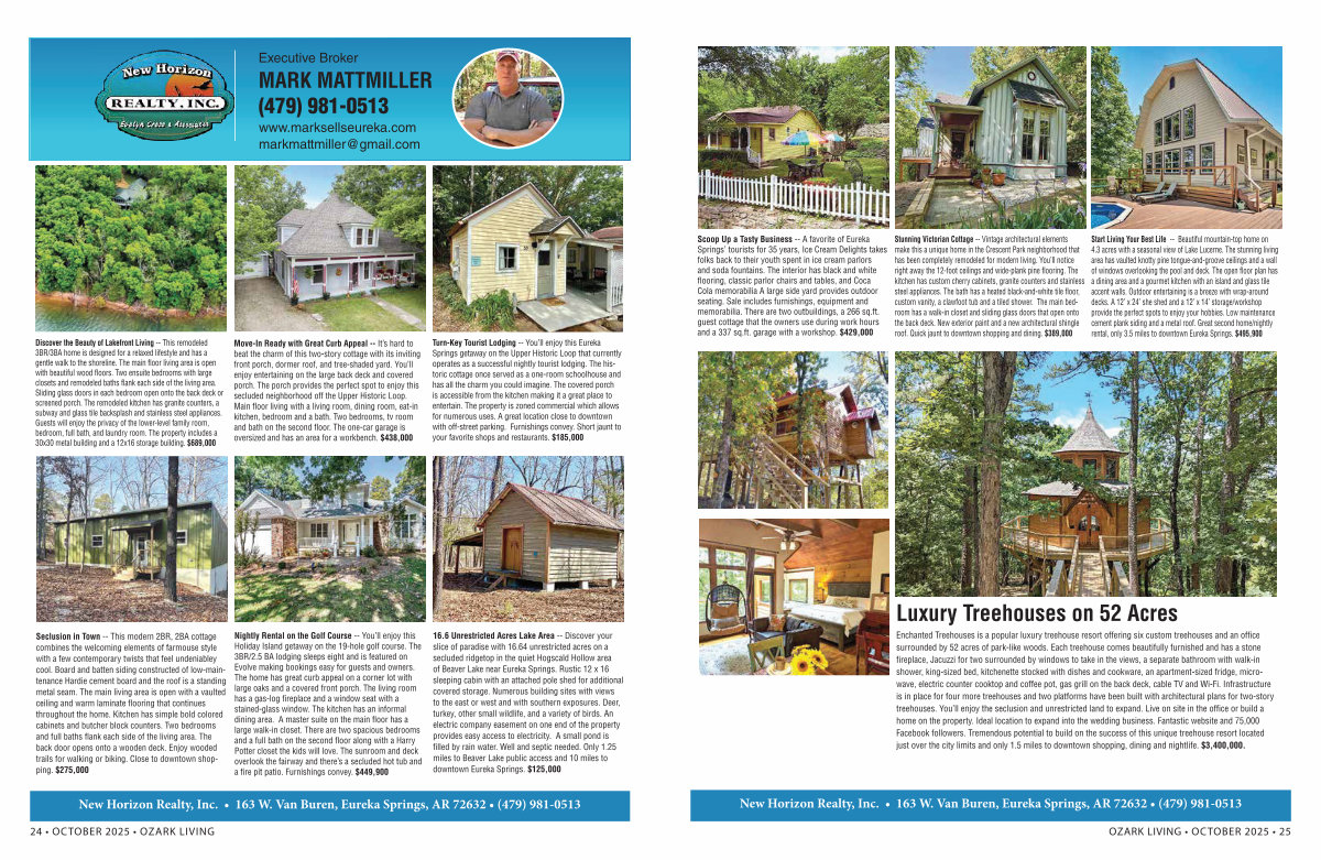 New Horizon Realty, Inc. • 163 W. Van Buren, Eureka Springs, AR 72632 •( 479) 981-0513