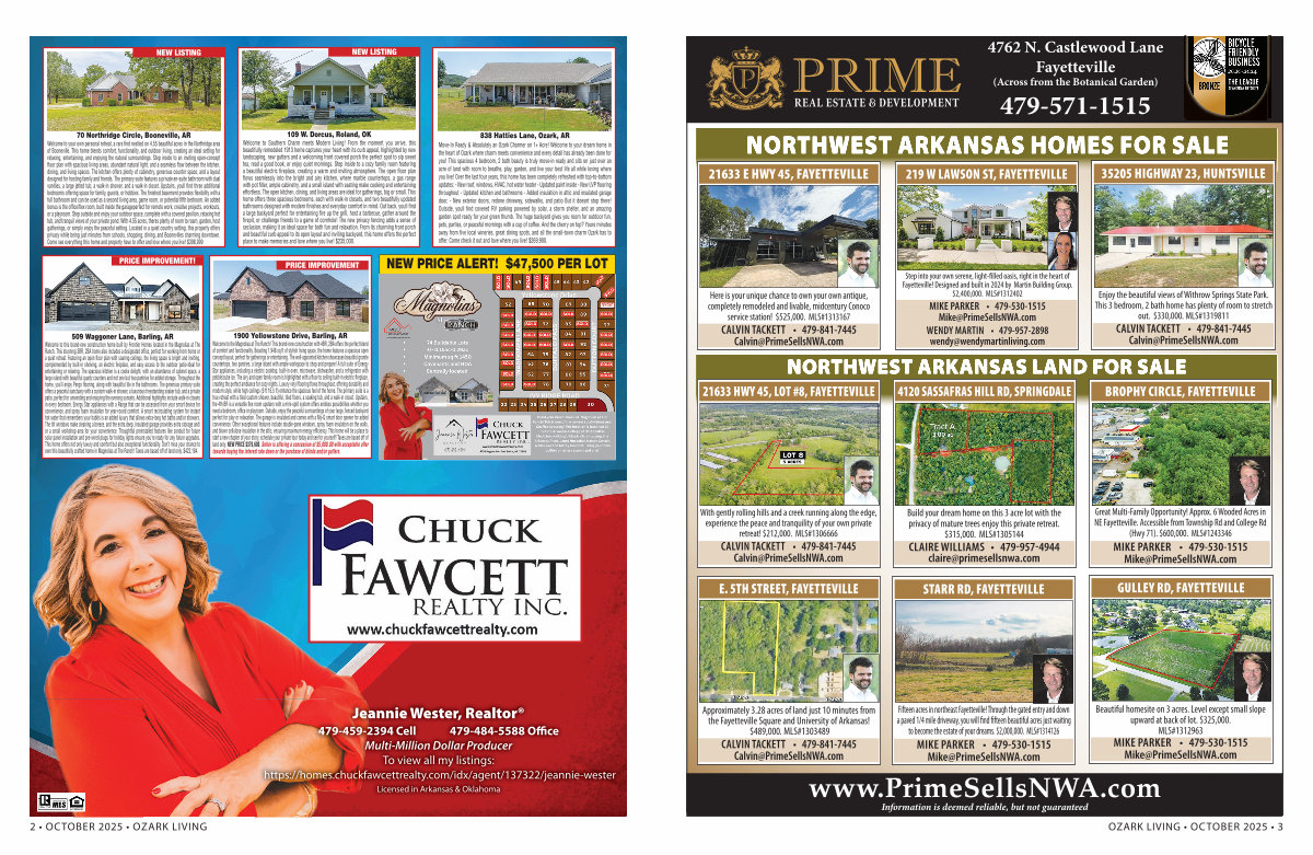 Build your dream home on this 3 acre lot with the privacy of mature trees enjoy this private retreat. $ 315,000. MLS # 1305144 CLAIRE WILLIAMS • 479-957-4944 claire @ primesellsnwa. com