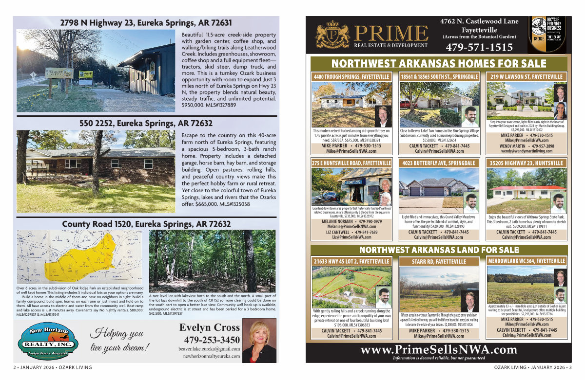 This modern retreat tucked among old-growth trees on 1.42 private acres is just minutes from everything you need. 5BR / 3BA. $ 675,000. MLS # 1328391 MIKE PARKER • 479-530-1515 Mike @ PrimeSellsNWA. com