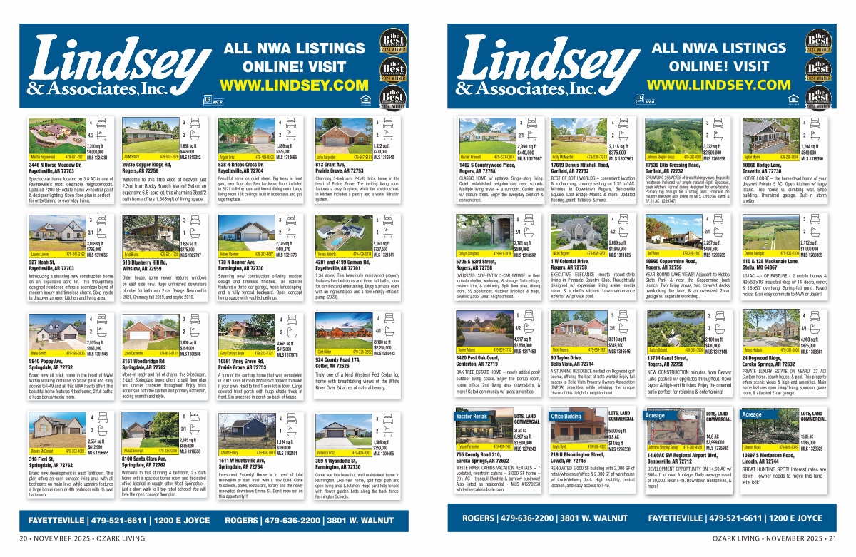 ALL NWA LISTINGS ONLINE! VISIT WWW. LINDSEY. COM |